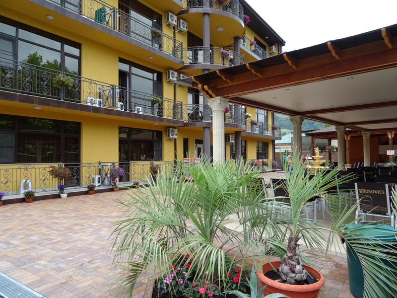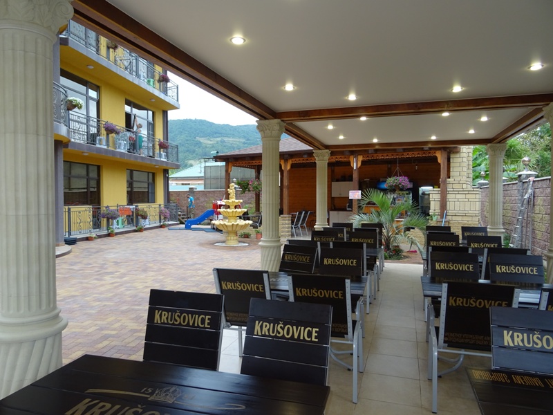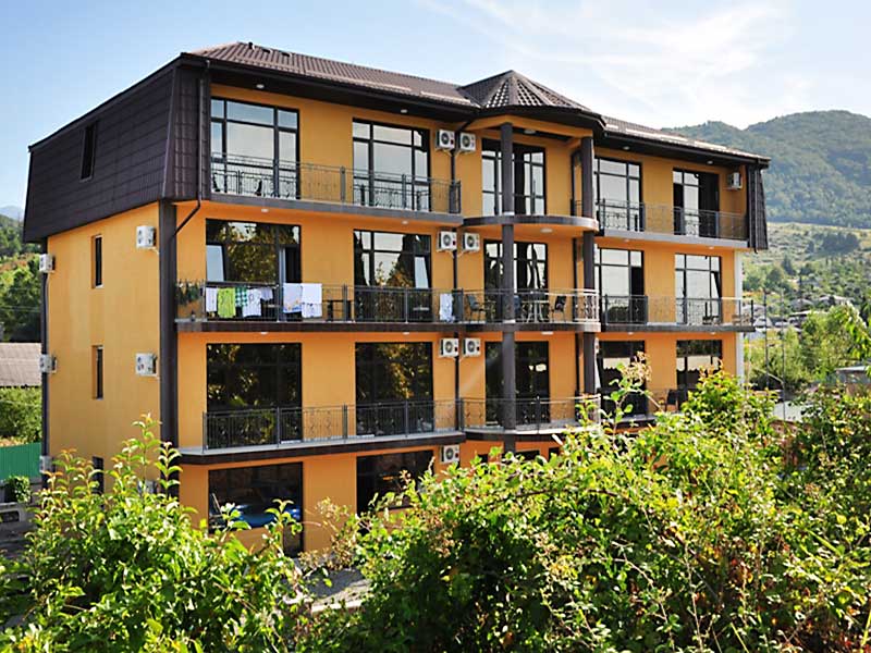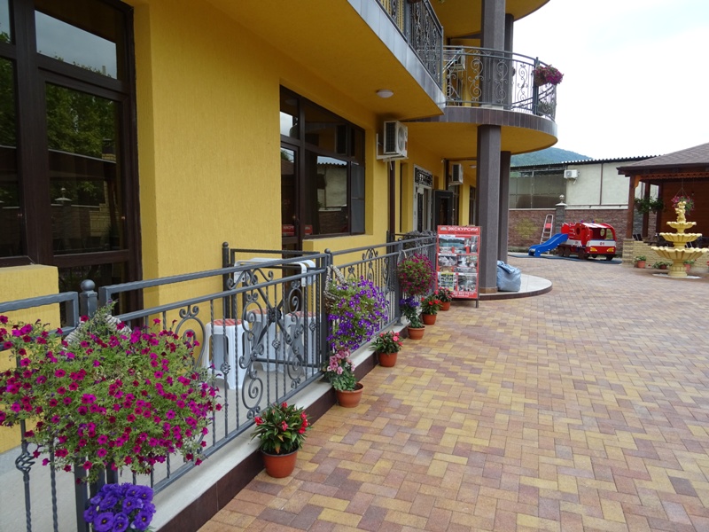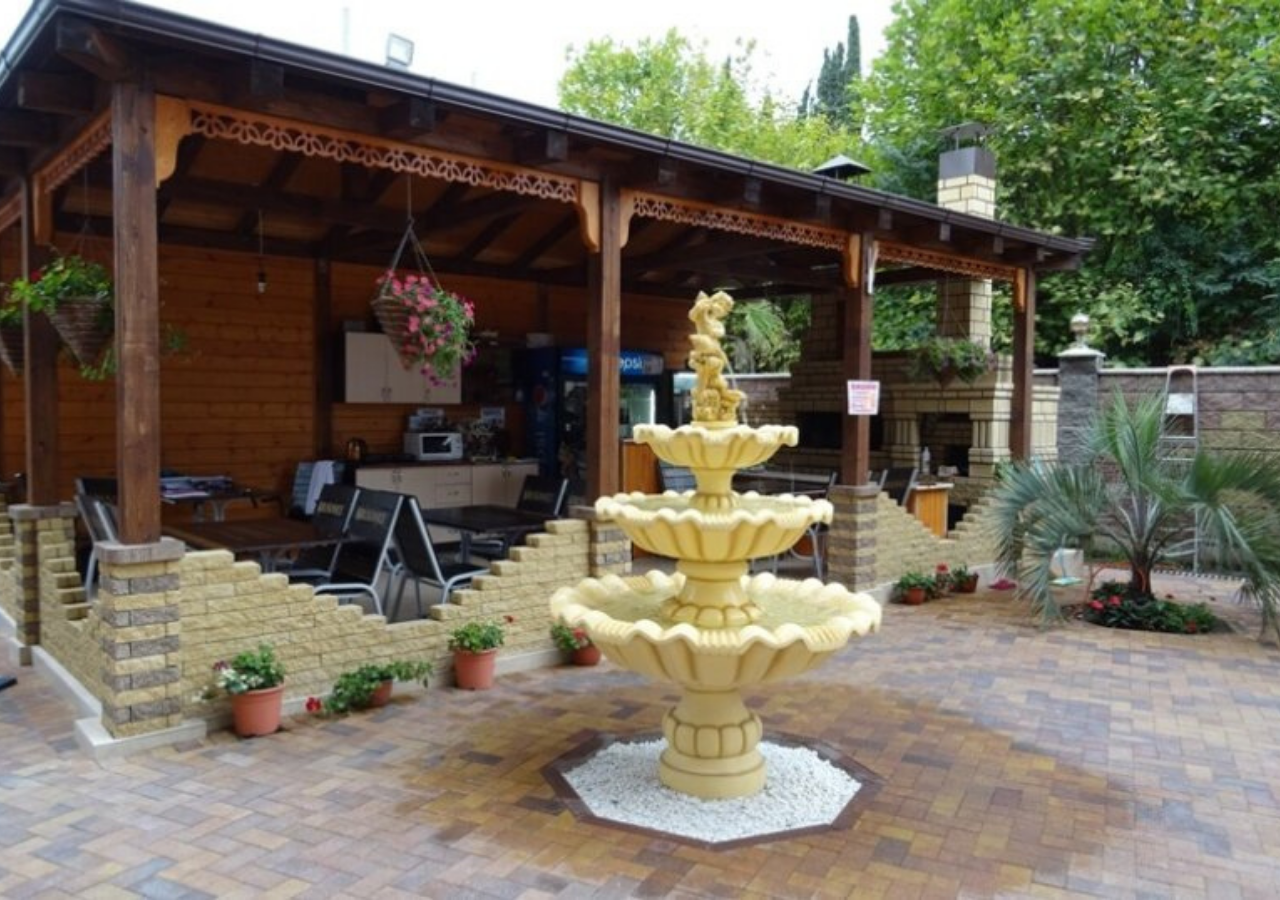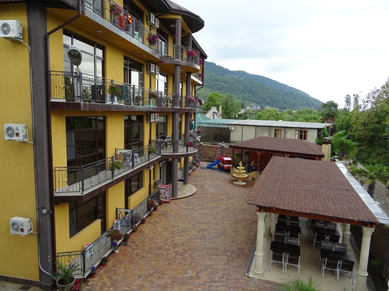 Галечный пляж Гантиади в 150 метрах — вторая линия. На пляже за дополнительную плату можно покататься на водных мотоциклах, арендовать пляжный инвентарь. На частной территории отеля оборудованы парковочные места, открытая терраса и барбекю, столовая, есть детская игровая зона.