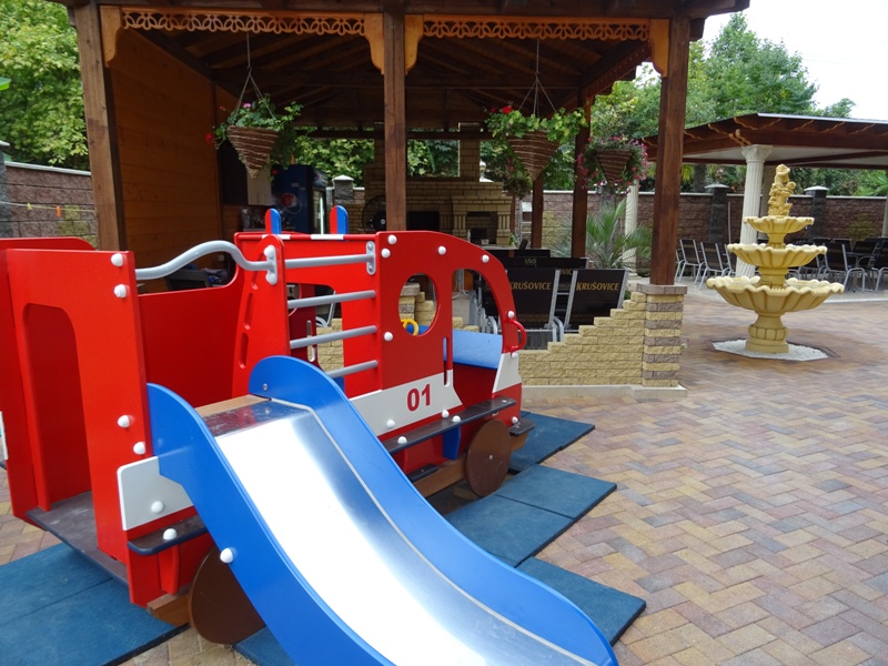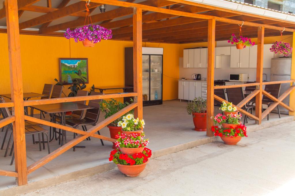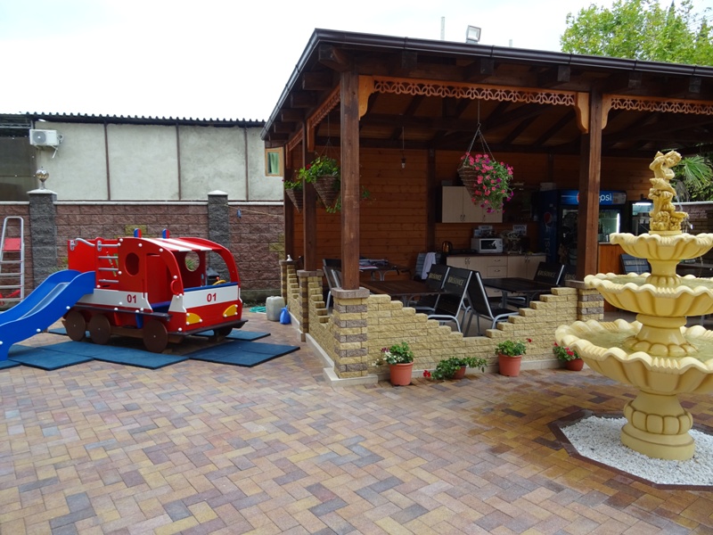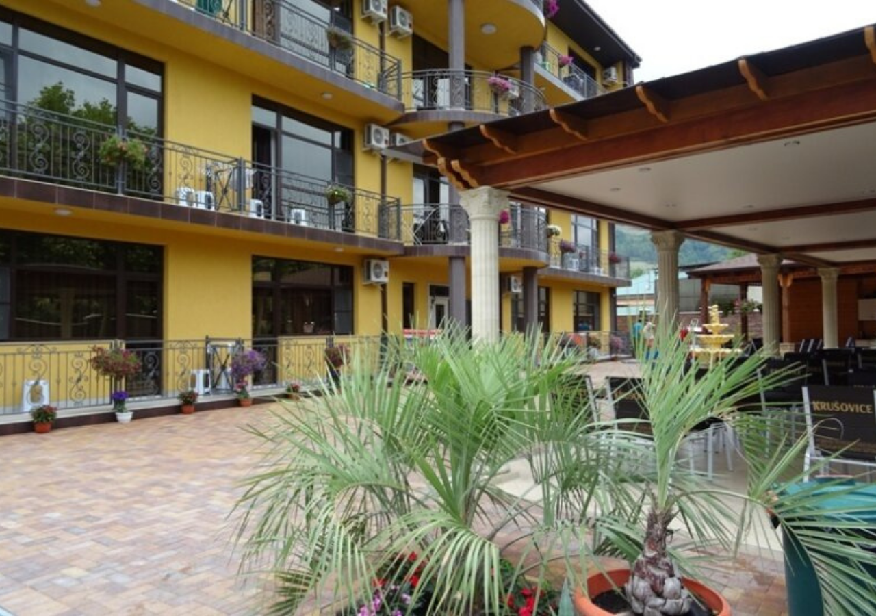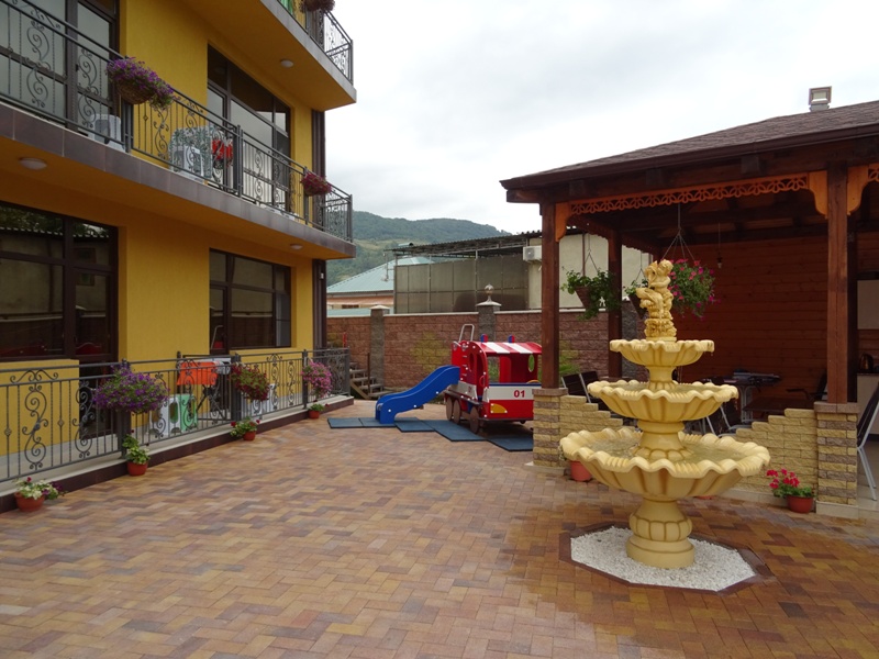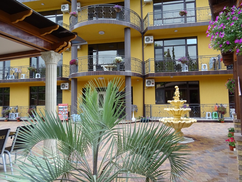 Галечный пляж Гантиади в 150 метрах — вторая линия. На пляже за дополнительную плату можно покататься на водных мотоциклах, арендовать пляжный инвентарь. На частной территории отеля оборудованы парковочные места, открытая терраса и барбекю, столовая, есть детская игровая зона.